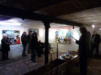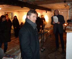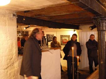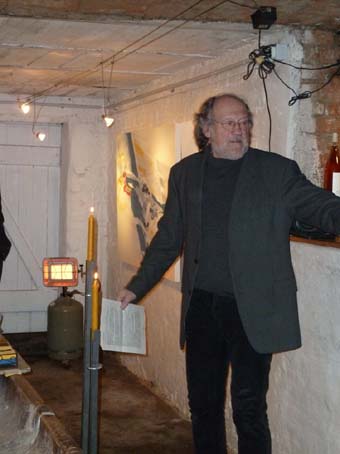 Manfred Bittner bei seiner feinsinnigen und überzeugenden Eröffnungsrede und Gäste, die aufmerksam und gespannt zuhören.